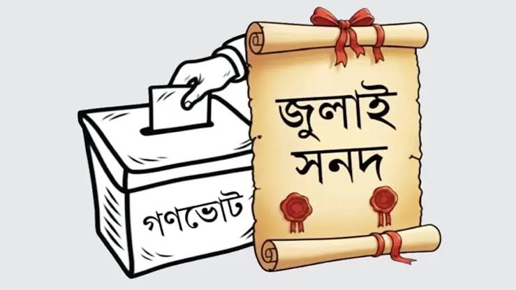 ক. নির্বাচনকালীন সময়ে তত্ত্বাবধায়ক সরকার, নির্বাচন কমিশন এবং অন্যান্য সাংবিধানিক প্রতিষ্ঠান জুলাই সনদে বর্ণিত প্রক্রিয়ার আলোকে গঠন করা হবে।